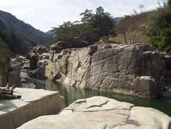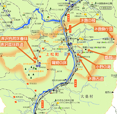 | 浦島太郎は竜宮城から地上へ帰るが(京都、天の橋立と言われている)、まわりの風景は変わっており、知人もおらず、旅に出ることにした。旅の途中、木曽川の風景の美しい里にたどり着き、竜宮の美しさを思い出し、乙姫にもらった玉手箱をあけた。玉手箱からは白煙が出て、白髪の翁になってしまう。浦島太郎には、今までの出来事がまるで「夢」であったかのように思われ、目が覚めたかのように思われた。このことから、この里を「寝覚め」、岩が床のようであったことから「床」、すなわち「寝覚の床」と呼ぶようになったという。 | |||||||||||||||||||||||