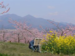 | をやるとモモの花の絨毯、又、残雪の南アルプス、姿のいい八ケ岳などが望まれま | |||||||