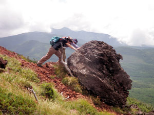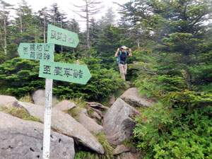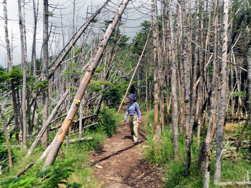 先頭に立ったお二人は「ヒエ〜」とか「ごむたいな」とか吼えながらも休憩もとらず前進。「雨池峠死の行軍」はまさに「北八咆哮」の地獄絵図となったのであります。