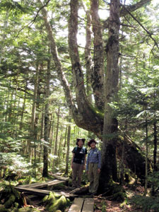 ●アウトドア派の女性お二人を引率して歩いた北八つ。静謐な「北八彷徨」の世界をたっぷり味わっていただこうと思っていたが、何故か珍道中「北八咆哮」となってしまった(*^_^*)。