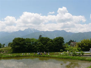 ◎ 5月31日(火) ◎ 集合場所 グリーンヒル八ヶ岳(新宿村) ◎ 集合時間 9:00 ◎解散 15:00頃 電車利用の方は長坂駅に8時30分に迎えに行きます。 前日までに担当にお知らせください。 ◎ コース グリーンヒル八ヶ岳 〜 大滝湧水 〜 八反歩堰 〜 三峰の丘 〜 諏訪神社 〜 金毘羅山 〜 城山公園 〜 蕪の桜並木 〜 グリーンヒル八ヶ岳 ◎ 概要 素朴な農村や漁村の景色を守るために活動するNPO法人に「日本で最も美しい村連合」があります。加盟村で良く知られている所では北海道美瑛町、京都府伊根町などですが、山梨県では早川町の1町、長野県では大鹿村、南木曽町、中川村、木曽町開田高原、池田町、小川村の6町村が入っています。 小さくてもすばらしい景観や文化が残る町が小淵沢町にもあります。 馬場の里・蕪の集落では八ヶ岳と残雪の南アルプスが目の前に迫ります。 足にも優しい土の路も探してきました。 水をはった田には甲斐駒が写り、早苗が初夏の風に揺れています。 日本の田舎のいつまでも残したい美しい風景がここにはあります。 一度失ったら決して取り戻せない、日本ならではの農村の景観がいつまでも 続くように願って歩きます。 ◎ 歩行距離 18q ◎ 会費 300円(震災義援金100円含む) 一般500円 ◎ 持物 弁当 飲み物 おやつ 雨具 ウオーキング手帳 ◎ 担当 奥津 090-4116-7507 0551-38-1577 サブ 風路 |