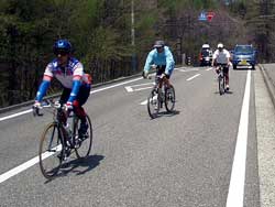 | ・今日は休憩時間を除くと実走100分でしたが、メンバ−はかなりのプロフェッショナルばかり。本番ではファミリ−が気楽に参加してくださることを考慮して、休憩時間も入れ遅い人で240分の猶予を持ったスケジュ−ルにしてあります。走行距離は30キロ強。その内上りは最後の約6キロ。標高差約250米。下りはかなりのスピ−ドが出ますが、危険防止のため時速30キロ以内で走るようリ−ダ−がコントロ−ルします。レ−スでもタイムトライアルでもありません。のんびり景色を楽しみながら走ることを目的としていますので、「普通の体力がある方」は是非挑戦してみてください。新しい八ヶ岳の魅力を発見できること請け合いです。 | |
