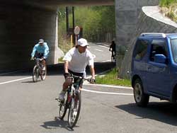 | さて、レインボ−ラインの終点から上りが始まります。ここまで実走約60分 | |