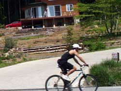 お疲れ様。行きはよいよい帰りはコワイのコ−スでした。後は牧場通りをゴ−ルの丘の公園まで馬でもみながら快適に下ります。 本番当日はここでアクアリゾ−ト清里のお風呂に入って、BBQで昼食という段取りとなっています(14:00頃の遅い昼食となります。参加者は軽い食べ物を持参し、走行中お腹を満たす工夫が必要かと思います) |