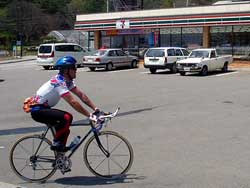 | 第一関門突破。有料道路手前のセブンで休憩。ここからがさらにきつい。 | |