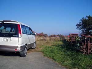 反対から撮ってみました。西側です。 電信柱と一本の木がありますが、星見にはまったく支障ありません。 車の隣に我家があるので、ほんの少し空が切り取られますがあまり影響なし。 |
