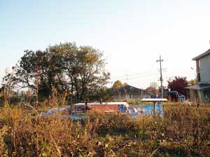 | ■本日は、コタツDE星見の設営地の周囲の状況のお知らせ第二段です。先回は川沿いの立地を説明しました。今回は我家のすぐ北側の空き地でやる場合です。8〜10名以上だとこちらになります。ときどき駐車場として使っている草原です。 | |