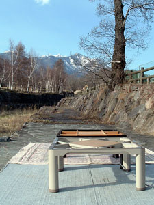 久しぶりの星見 わくわくしながらコタツの用意 う〜む、山がきれいだなあ、 雲もないなぁ よしよし。 これなら今晩も大丈夫だ |