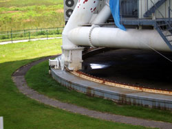 ジャンボ望遠鏡の脚は円形のレールの上に乗っています。 |