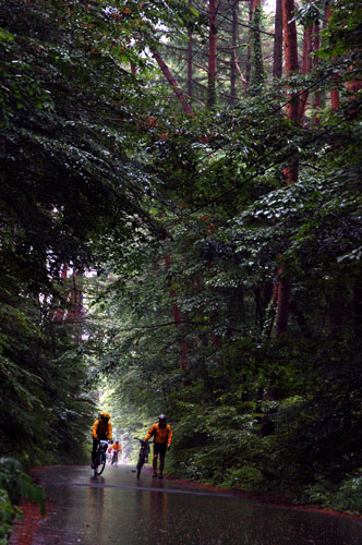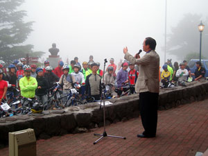 ・スタッフとして最高の喜びが味わえるイベント。それがこの「八ケ岳サイクリング」だ。今年もまた新たな出会いと懐かしい顔との再会があった。生憎の天候で自慢の風景を見ていただけなかったが、それ以上の感動があった。参加者とスタッフと天候が綾なす絶妙なドラマ。皆に伝えたいが、それを真に理解するには自転車に乗って走るか、スタッフとして働くかしない。毎年のことながら、麻薬のようにクセになる喜び、といったらいいのだろうか・・。 |