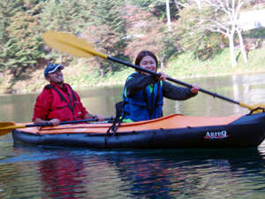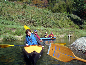 | ●仲の良いご家族3人が、はるばる浜松からシーカヤックを乗りに来て下さいました。浜松といえば遠州灘の広がる海の本場ではありませんか!なんでまたこんな山ん中にシーカヤックを?といってはミもフタもありません。いろいろワケあってのご来八つであります♪うれしですね〜。というワケで、pensuke号、ふじけん号、はじめ くん号3艇の出動で「山ん中のシーカヤック」を楽しんでいただきました。シーカヤック倶楽部の公式行事(んなモンあるのか?)ではありませんが、遠来の客人のシーカヤックデビューを当倶楽部の総力あげて歓迎させていただきました 。その様子をここに報告させていただきます。 | |