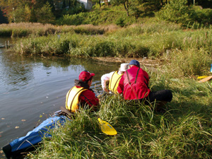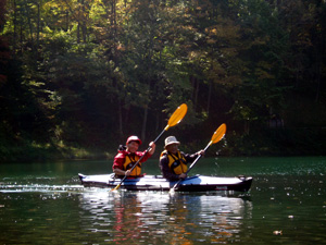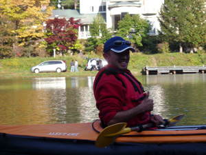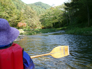 | 紅葉も始まって、のんびり浮かんでいると染まってしまいそう。でもそろそろ帰りましょう。風が冷たくなってきました。 | |