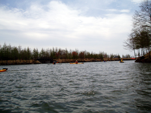でもそこはやっぱり湖のお気楽さ。どんなに流されても湖岸の石垣にチョコンとぶつかって終わり。波風がいくら強くても、抵抗しないでただただ力を抜いて乗っていれば良いのです。 波風に煽られてグラグラしたときは決して風下側にパドルを入れてはいけないことを学んだのは本日の収穫でした。 追い風に乗って進む気持ちよさと、向かい風に向って進む緊張感の両方を楽しめたのも本日の収穫。 いうあ〜やっぱりカヤック遊びは楽しいなぁ〜♪ |