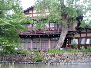 これは写真よりも是非実物をご覧いただきたい。大正浪漫の香り漂う建築物が湖畔に。1Fのテラスに出られる全面観音開きのガラス扉。2Fのテラスの装飾手摺りはアールデコ調。左には石組みの暖炉と煙突が見えた。 そのほかにも湖岸にはまるでプライベートビーチやプライベート桟橋を持つような別荘や住宅が点在し、他の湖とはちょっと違う雰囲気を見せていた。木崎湖恐るべし。 |