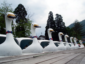 | 昔「アニメ」に「お願いティーチャー(おねティ)」というのがあって、ここがその舞台になったとか。で、今でもファンが巡礼(?)にやってきて、まるで聖地のごとくなのだそうです。「食べ物に生卵を落とす」というのがアニメに出てくる有名な場面だそうで、カレーやウドンにはもちろん、カキ氷にも生卵を落とすのが、木崎湖周辺の食堂の定番なのだとか・・・。 | |||||||