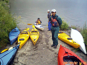 今回左上の女の子の乗っているシットオンが大人気。釣りができるような工夫があちこちに施されている。背もたれを倒して昼寝もできる。 フォールディングありインフレータブルあり、やっちまった号あり(^^;;)と、なかなかの豪華布陣で、次はどれに乗ろうか迷う。 こんな天気にもかかわらず飛び入りやヤジ馬も多く、潜在的なカヤッカー(予備軍)は案外多いのだと実感。 なかなか充実した一日でした。 |