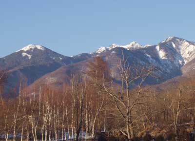| 真ん中の少し白いゴツゴツしたところが権現岳。 |