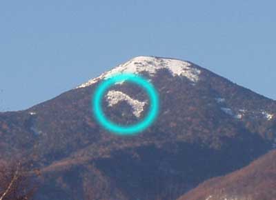 | 左端の編笠山中腹の雪形をご覧下さい。 |
