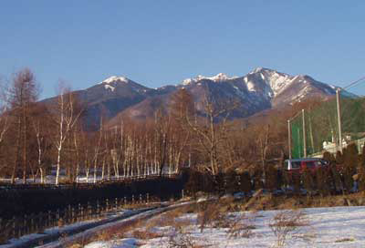 | 南北に長い八ヶ岳山脈の最南端を仰ぎ見るという図です。 |