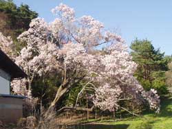 ●小淵沢 神田大糸桜 2006年4月21日 開花状況 ・見頃/4月中旬 ・問合せ/小淵沢役場企画課(0551-36-2111) 糸桜としては異例の大木。幹が3つに分かれ、それぞれの枝が傘のように 垂れ下がっている。神田は「しんでん」と読む。神への供米を作る神田の 畦にご神木として植えられたことが名前の由来となっている。遮るものの ない田の真ん中に立っているので八ヶ岳や南アルプスなどの展望が絶景。 ・ http://kobuchisawa.com/sakura/index.html |