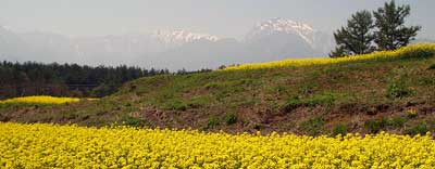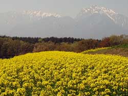 甲斐駒ケ岳と南アルプス。 いちめん なのはな いちめん なのはな なんていう詩がありましたね。まさにそれです。 |