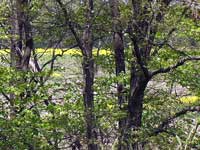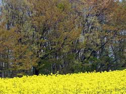 菜の花の奥は 萌えはじめた樹木と山桜の赤い葉桜。 ここは桜の名所でもあり、2週間ほど前には桜が満開でした。 |