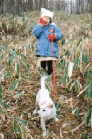 | いつもは僕に近づけない五歳の梨絵ちゃですが、今日はお父さんも一緒なので恐る恐る僕に近づき、ついにはヒモも持って見たのでした。「わたしにも散歩出来る!」と梨絵ちゃんは大喜びでした。「フン、それは私のラッキ−よ」っと由佳ちゃんが後ろでちょっとすねてます。 | |