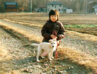 | 始めまして僕はラッキ−です。平成11年の12月13日にこのウチに連れてこられました。生まれて約3ケ月の頃です。12/13というのはこのウチの由佳ちゃんの誕生日で、僕は由佳ちゃんの9歳の誕生プレゼント代わりだったみたいです。だから、ご主人さまは由佳ちゃんです。由佳ちゃんはいつもちゃんといろんな世話をしてくれてうれしいんですが、さて今日は妹の梨絵ちゃんも一緒に散歩について来てくれました。 ところがこれがいけなかったみたい!、はやくも私をめぐって姉妹喧嘩が勃発してしまいました。 |