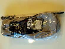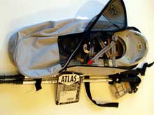 | 1、実物を見てみましょう。下は我家でレンタルしているものです(アトラス・スノ−シュ−)。 | ||