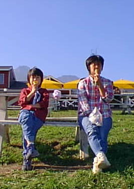 | 清泉寮のソフト売り場は猛烈な行列だったので、少し下のネイチャ−センタ−に行った。案の定7、8分の待ち時間で念願のジャ−ジ−ソフトを!! | |