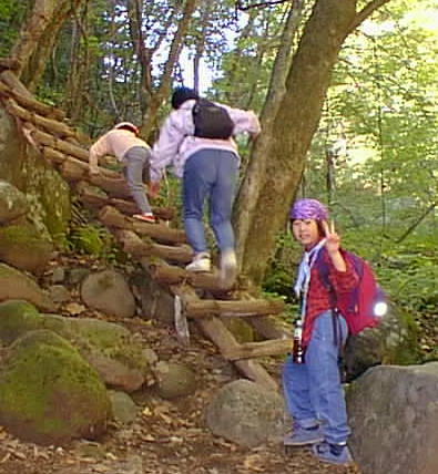 | わずか1,9キロの間に、はしごあり渓流あり、滝あり、このように滑床あり、と変化に富んで、しかも4歳児でも楽しめる!昼食中に追い越して行った人は2組、向こうからきた人は一組に過ぎなかった。 | |
