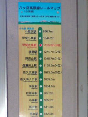 小諸から出発して小淵沢までの順に歌詞が書かれています。