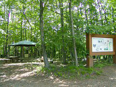 上がりきった所の少し先に休憩所があります。「オオムラサキの森」です |