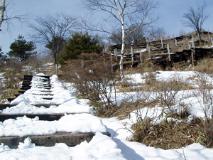 それにこの階段。 この階段もすっかりお馴染みですが、冬期は雪や凍結で、ちょっと危険です。 では、どうやって美し森展望台まで歩くのか? 裏技をお教え致しましょう(^^ゞ |