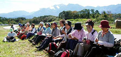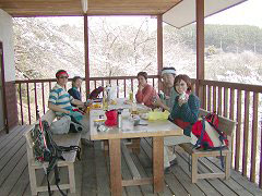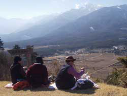 同じ七里岩の台上数キロ南に、信玄の子勝頼が建てた新府城がある。その城が武田家滅亡の発端となるのだから歴史とは皮肉なものである。 地理や歴史のあれこれに思いを馳せつつ、我らはまたもやお弁当を食べる。 |