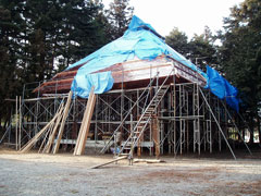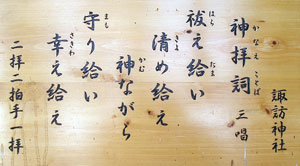 | 途中、諏訪神社は大幅改修中でした。 工事の足場の奥にこんな看板が置いてありました。 | |||||||||||
