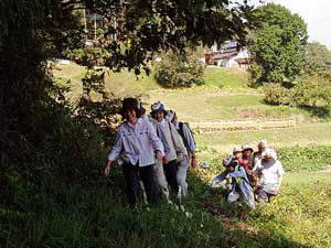 | だんだん降りてきて、最初山本数馬さんの家の玄関の方へいき、すぐ出てきて、母たちのいるところから100mくらい前方をたえず提灯をつけたり消したりしながら、近くの田圃を横切って、堂山の玄関の深い堀内七郎さんの家のあたりへ行って出てきた。 |
