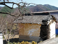 すぐ側に茶色い土壁のままの土蔵があった。これに漆喰を塗って白くすればきれいになるが、このままでも土蔵の機能には問題ないのだという。「金の問題でもあるが趣味の問題でもあるな、オラんとこは土壁のままだあ」と言ってオジサンは笑った。 |