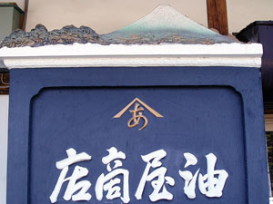 油屋の看板自体も鏝絵だ。富士山と松並木。