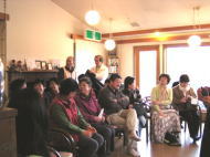 おつきゆきえさんのことを話そうとすると、心が舞い上がってしまい、なんだかうまく伝えることができません。 でも、ともかく一度聞いてみてください。本当に素晴らしいんです。 きのうはペンションたんぽぽさんで、宮沢賢治の朗読があり、お客様と一緒に聞きに行ってきました。3つのお話はどれも良かったです。最後の虔十公園林は胸がいっぱいになりました。 終わったあとゆきえさんをかこんでみんなで懇談会。ゆきえさんの語る賢治の世界を共有した一人一人の方の感想に共感したり、感心したり・・・。私もうまくは話せませんが、気持ちだけは溢れそうです。 きょうはいよいよ風路で朗読会。平日でどのくらい集まってくださるかと心配でしたが、ダイニングの椅子では足りないくらい。うれしいです! 今回は2年前初めて聞いたときの話をリクエストしています。賢治のすごさを教えてくれたゆきえさんとの衝撃の出会いでした。もう一度聴きたいと、ずうっとおもっていました。(まだ聴いてないお話も聴きたいのですが・・・) 題名からワッハッハと笑ってしまう観客もいました! 懇談会のあと、いつも近くのお店バウハウスさんで 昼食を食べているのですが、きょうはお休み。風路のコックが特製カレーを作りました。野菜たっぷりのカレーで、ご飯は玄米ご飯もちキビ入りです。「わー!おいっしい!」と言っていただき、コックは鼻高々・・・ |